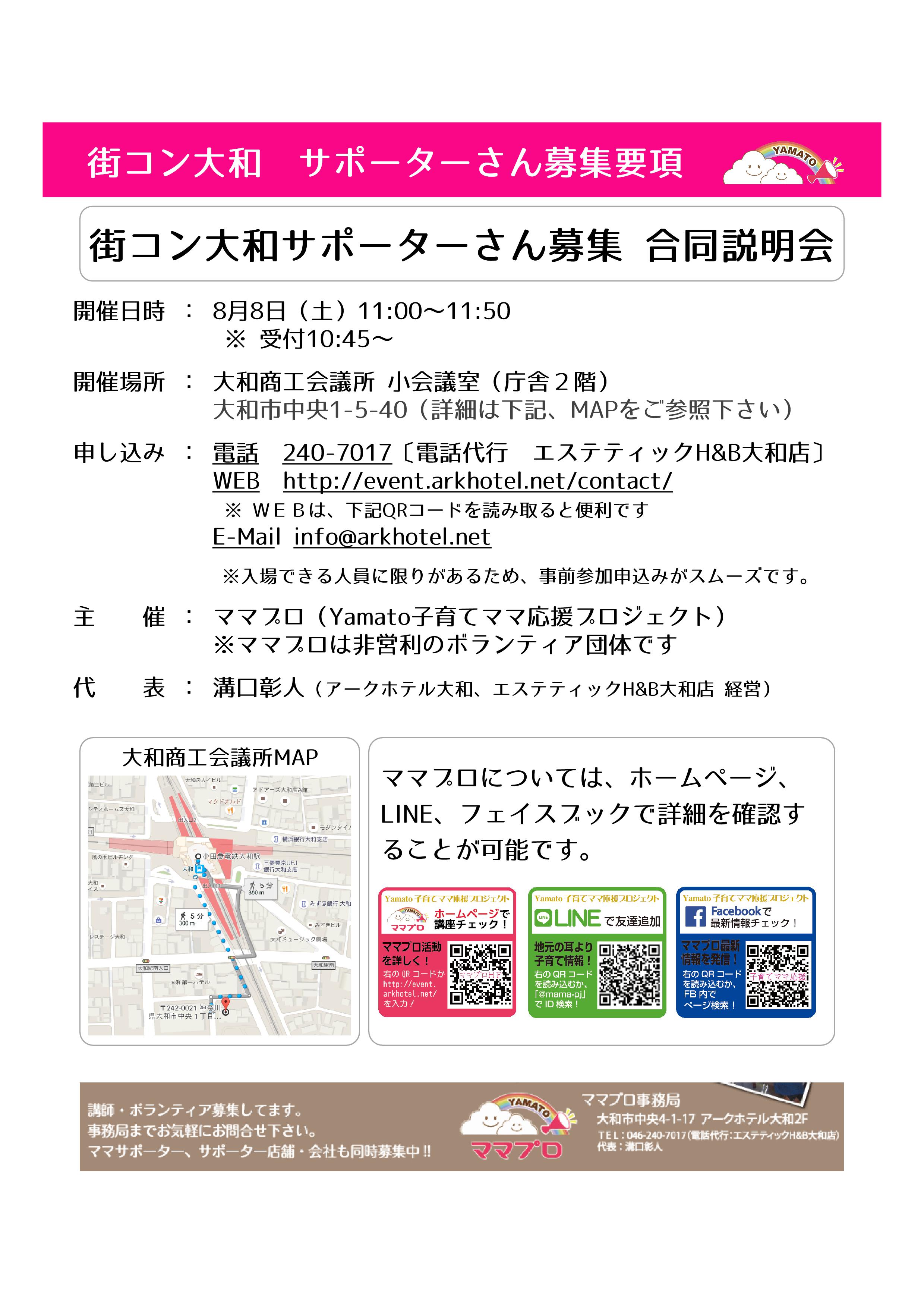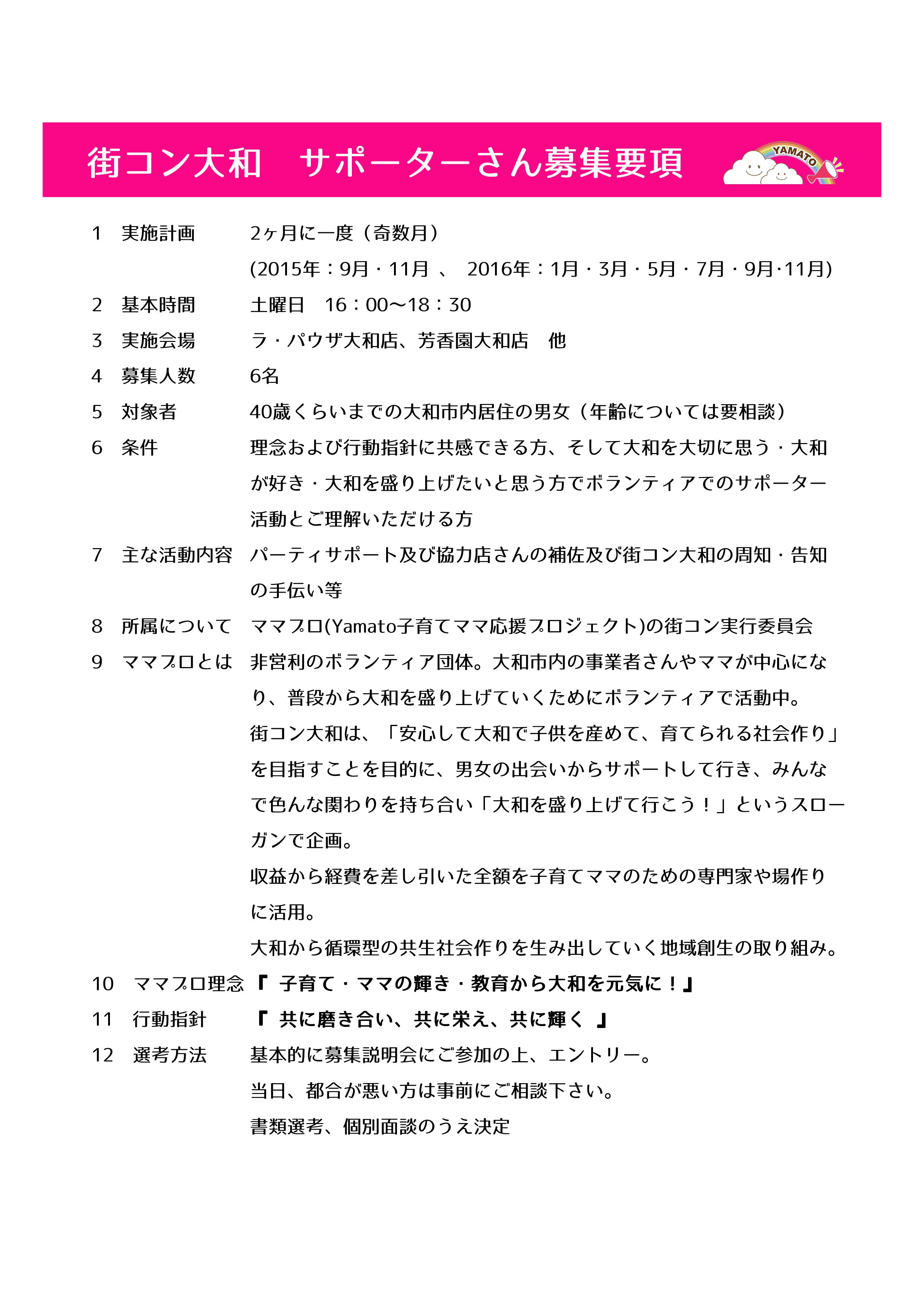 街コン大和サポーターさん募集 合同説明会開催のお知らせ