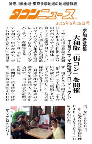 6月26日(金)タウンニュースさんに『街コン【大和版】』が紹介されました。