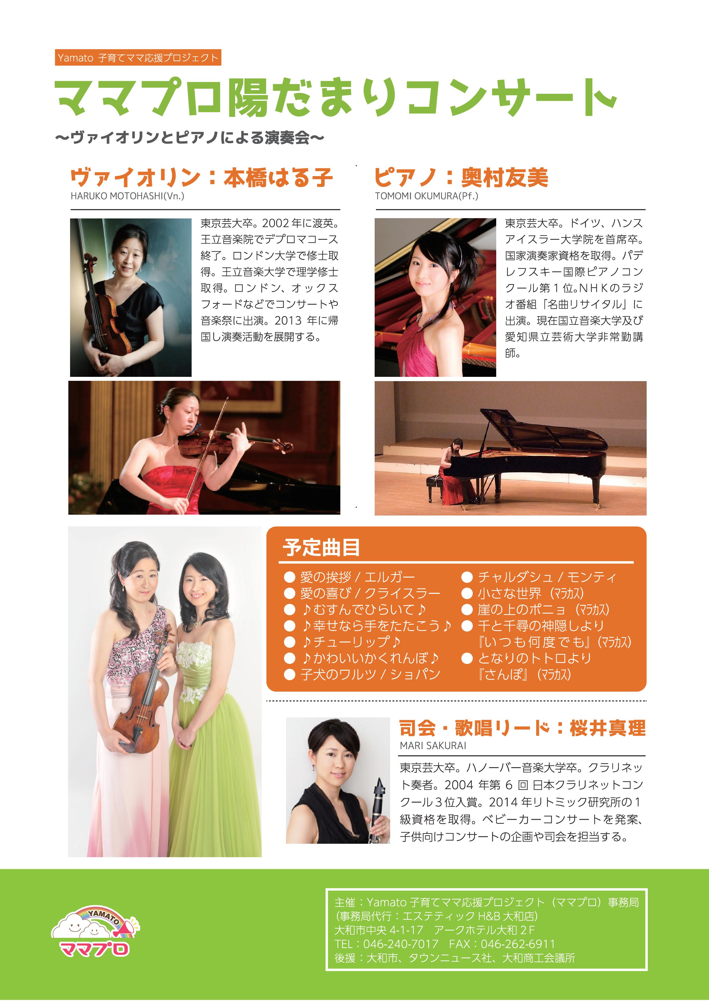 ママプロ「陽だまりコンサート」、本当に沢山のお申し込みを頂きありがとうございます!!