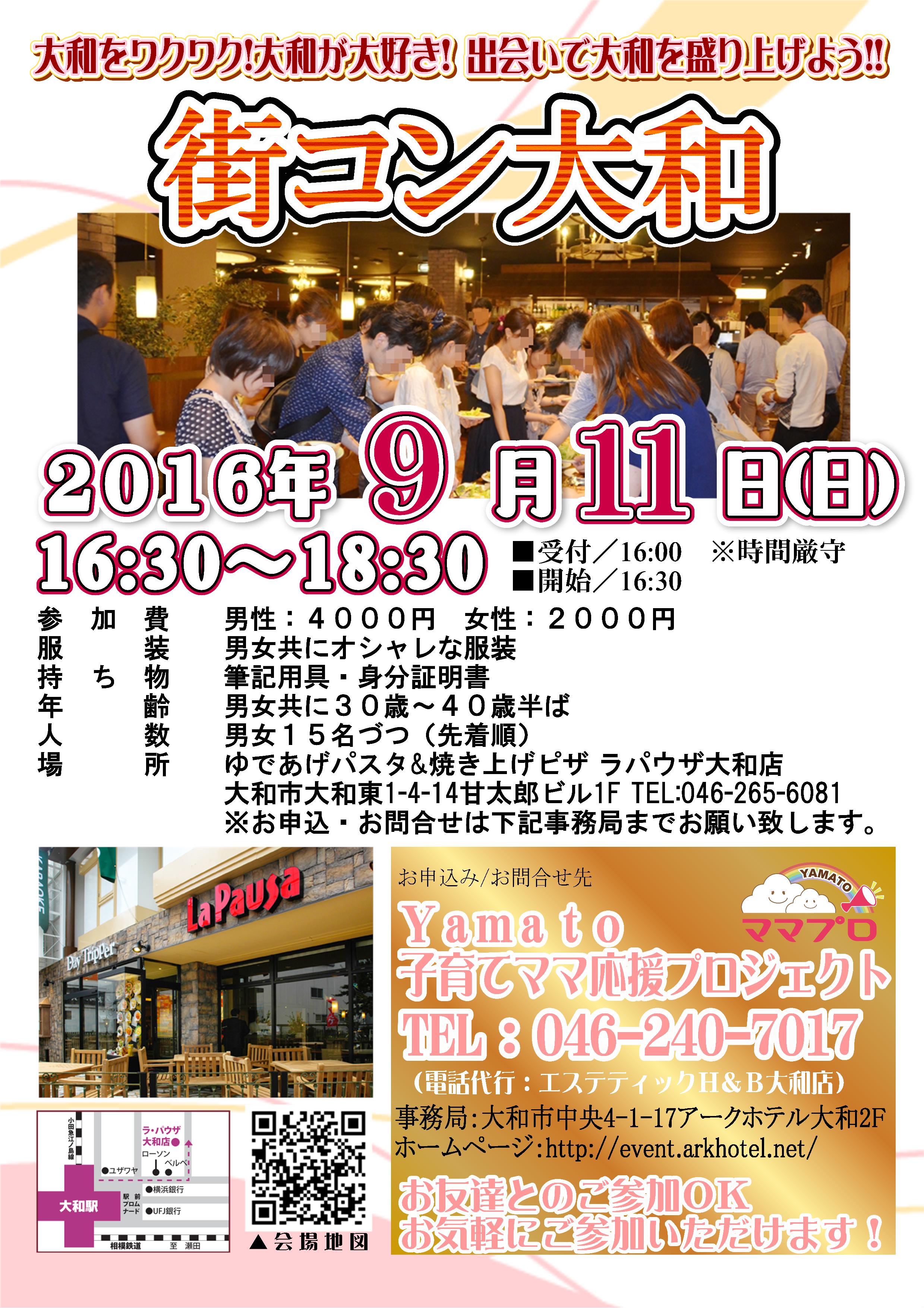 9月11日(日)16:30~、街コン大和が開催されます!(ママプロ主催)